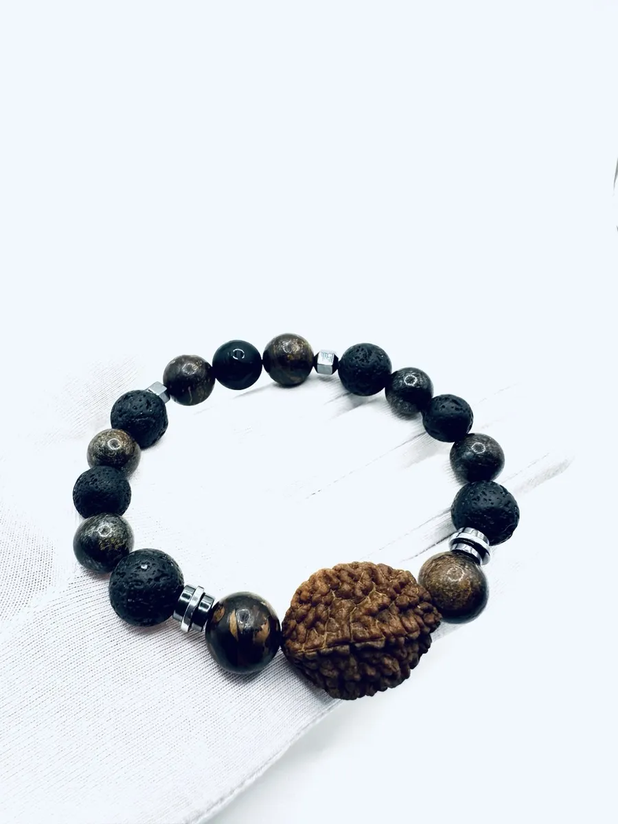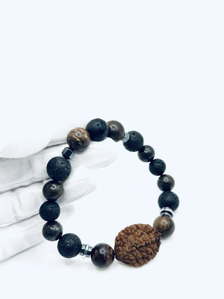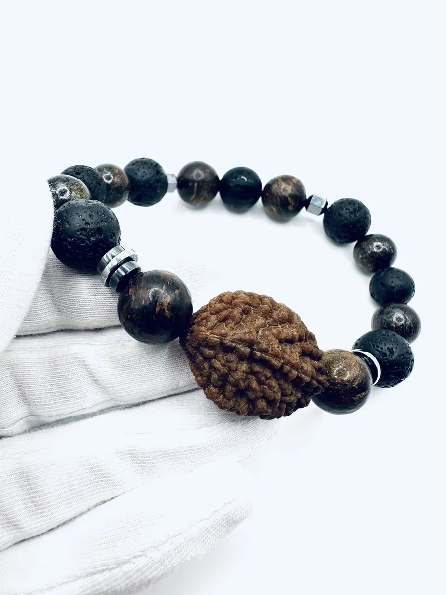 Этот браслет объединяет силу древних артефактов и энергию земных стихий. В его сердце — редкая двуликая рудракша из Аруначала, священного места силы в Гималаях, где, по преданиям, достигали просветления великие йоги и сиддхи.