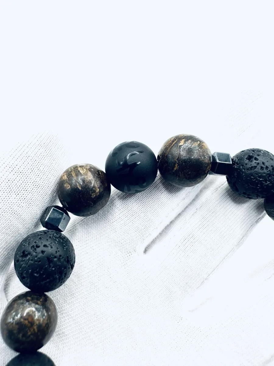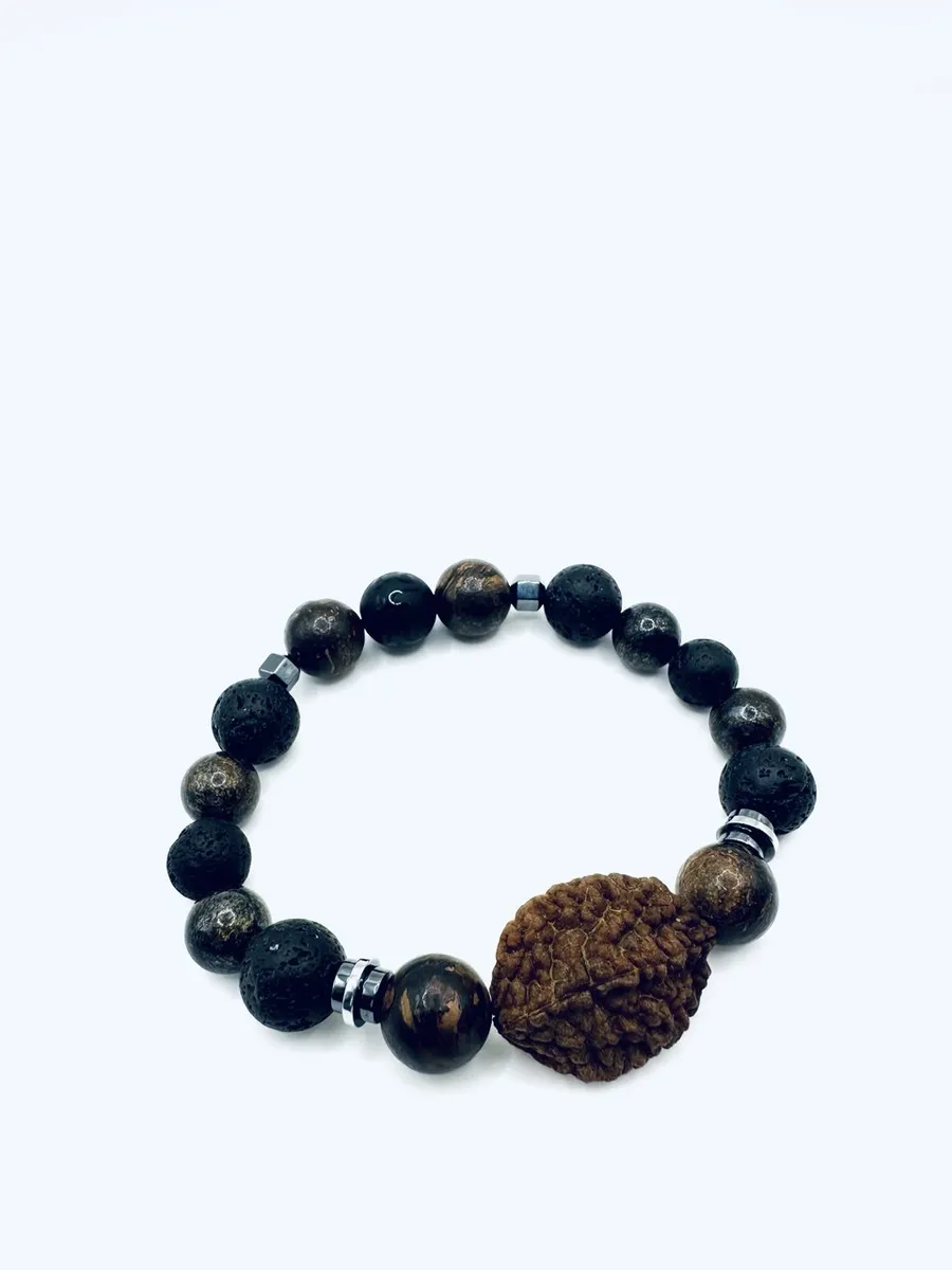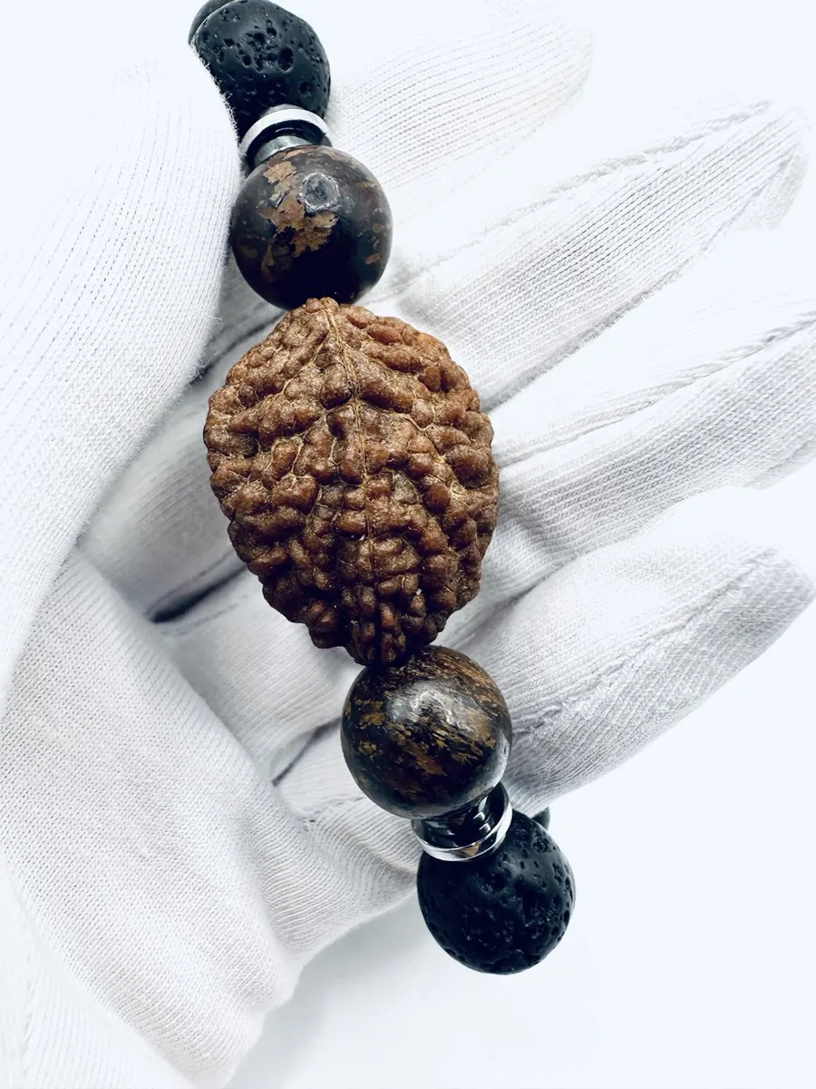 Этот браслет объединяет силу древних артефактов и энергию земных стихий. В его сердце — редкая двуликая рудракша из Аруначала, священного места силы в Гималаях, где, по преданиям, достигали просветления великие йоги и сиддхи.