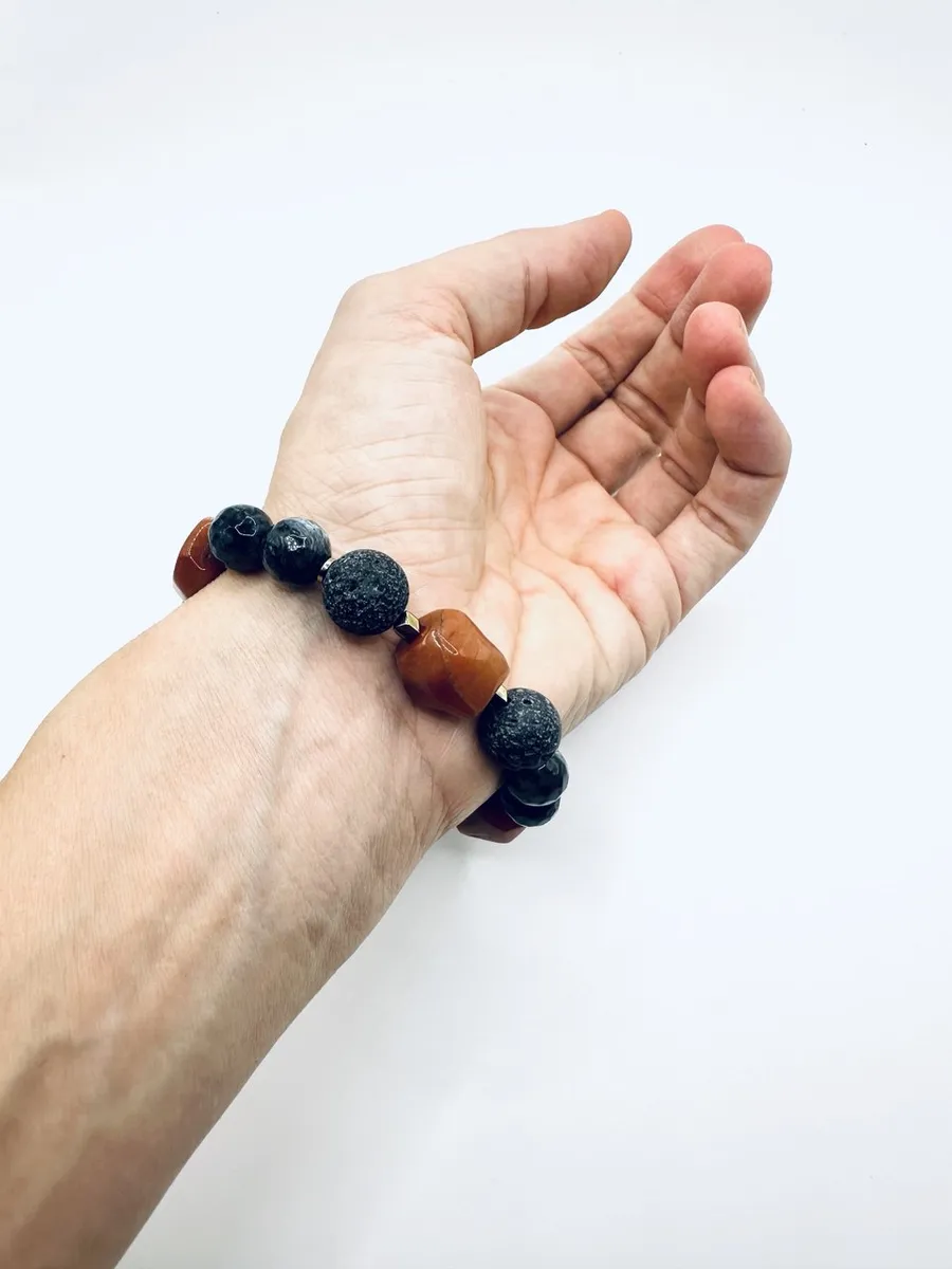 Вулканическая лава натуральная, некрашеная лава — это редкость. Обычно её тонируют, но здесь естественный пепельно-серый цвет. Пористая структура работает как природный диффузор — нанесите каплю эфирного масла, и аромат будет сопровождать вас весь день. Лава заземляет, возвращает в тело после глубоких практик.
