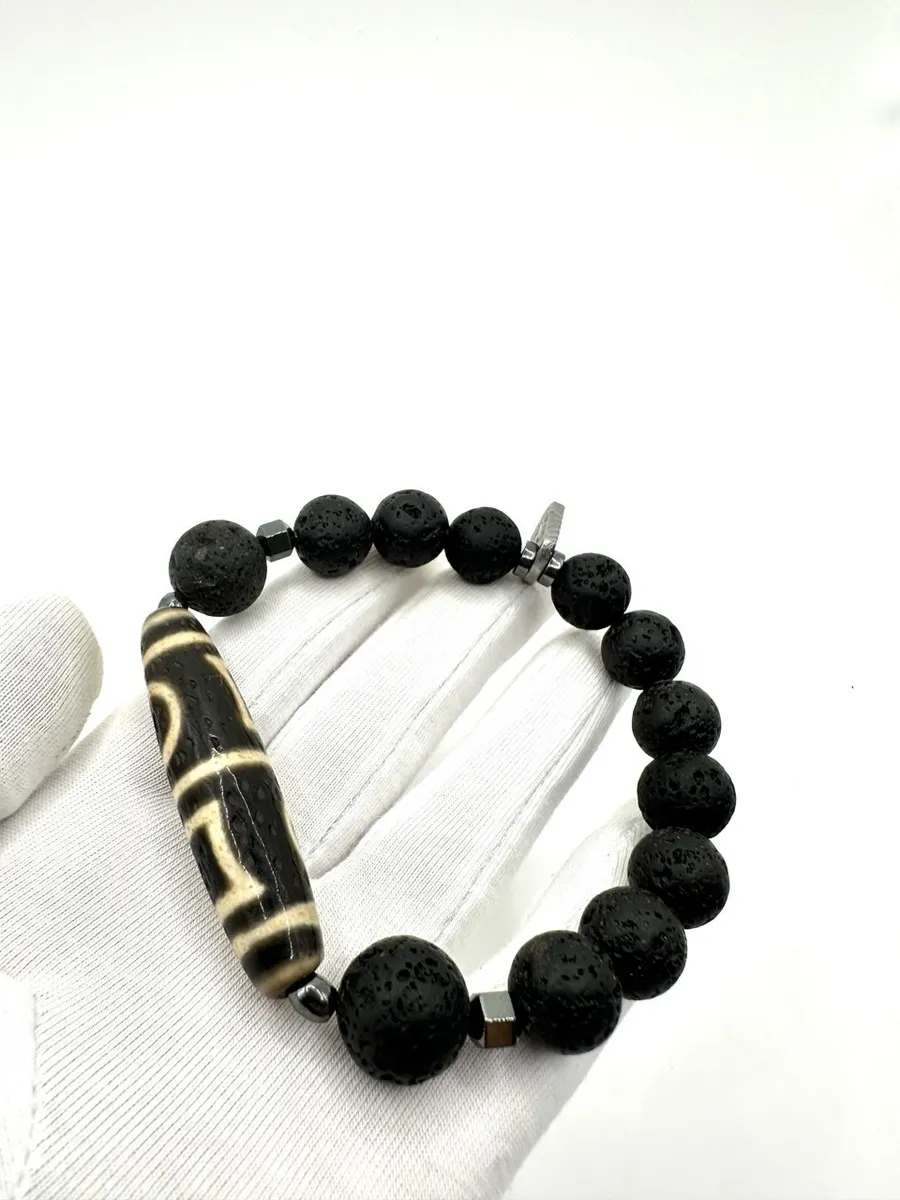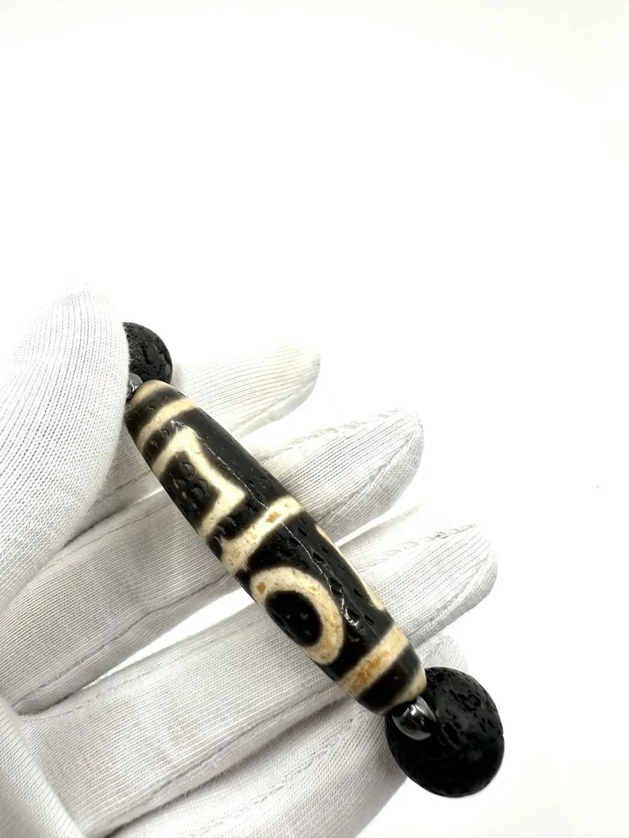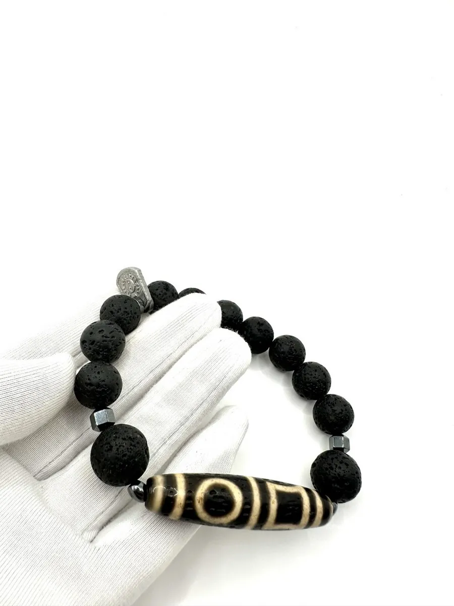 Сердце браслета — тибетская бусина Дзи «Земля и Небо»