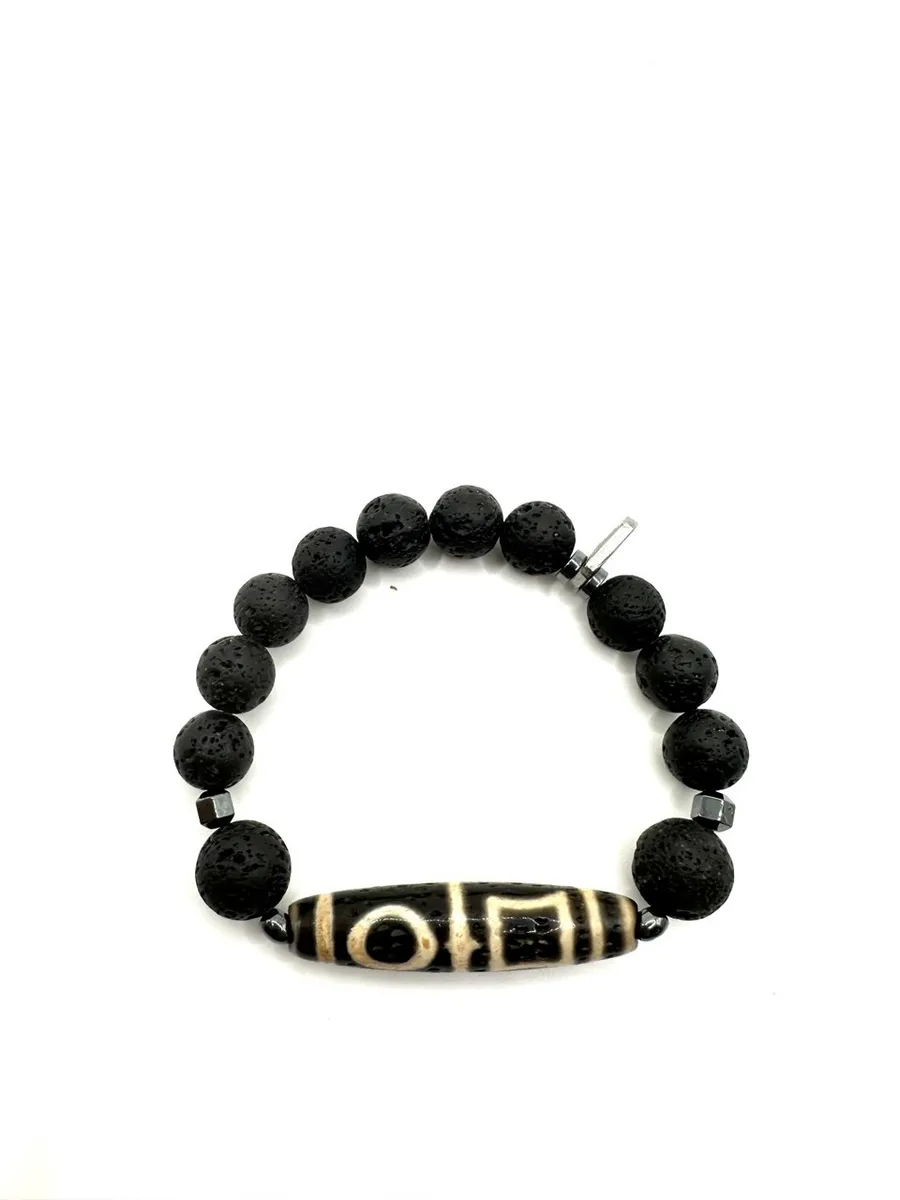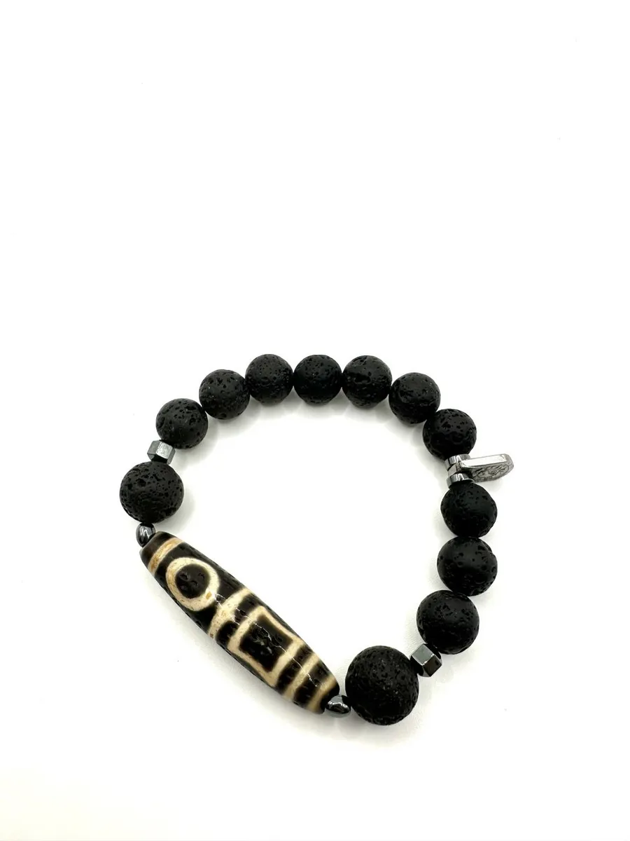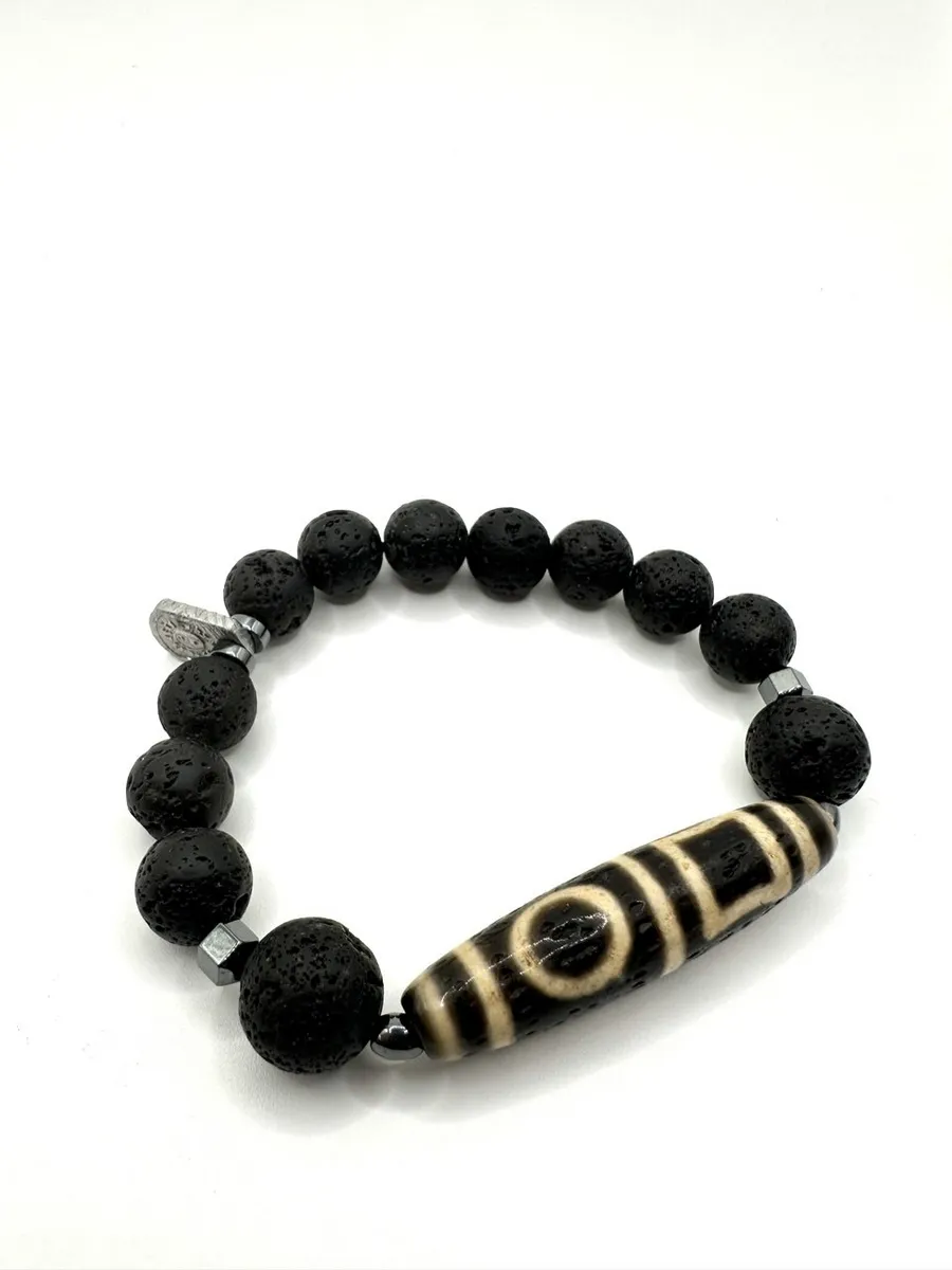 Сердце браслета — тибетская бусина Дзи «Земля и Небо»