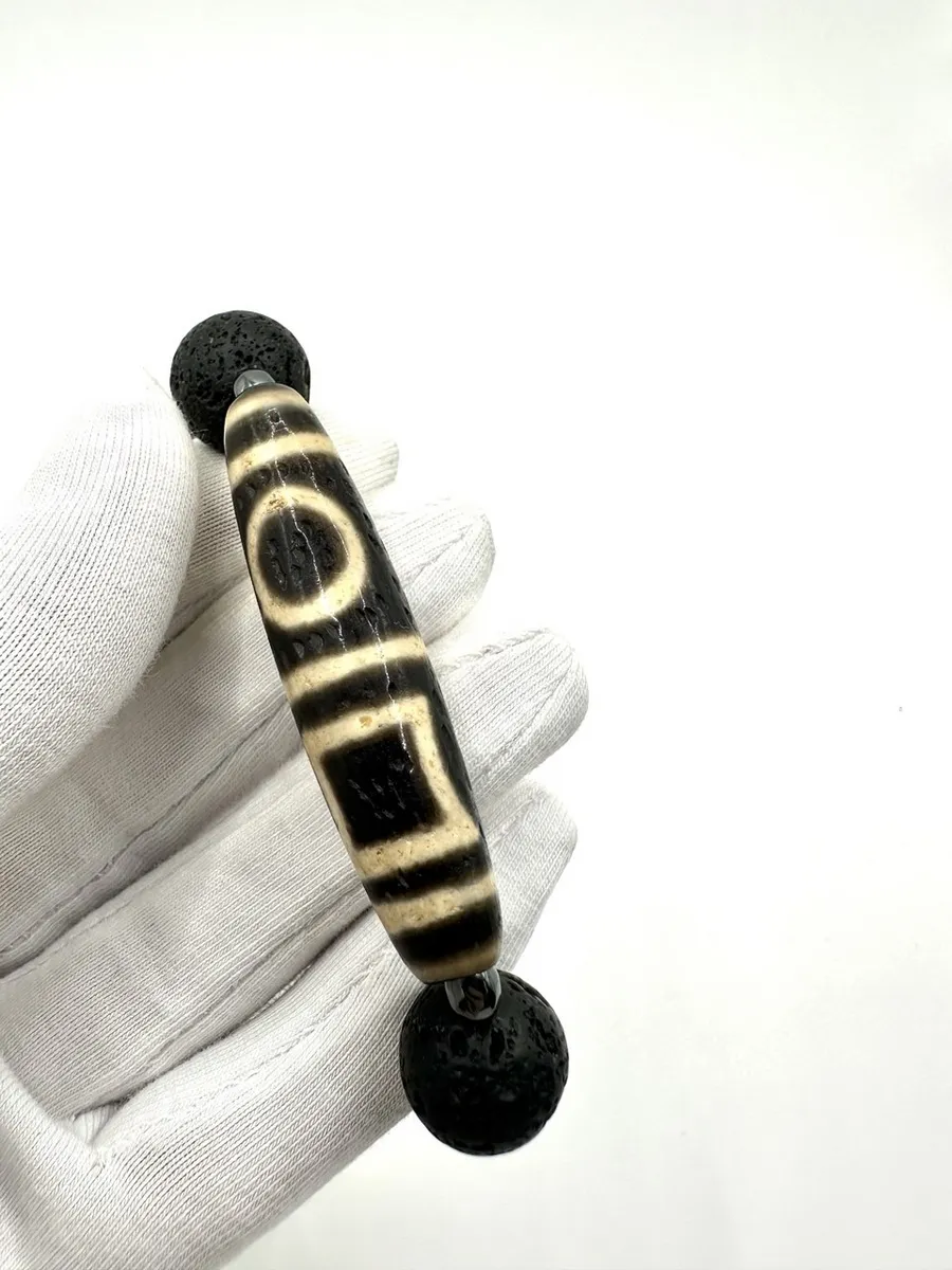 - Бусина Дзи: агат, 51 × 12 мм, ручная работа тибетских мастеров