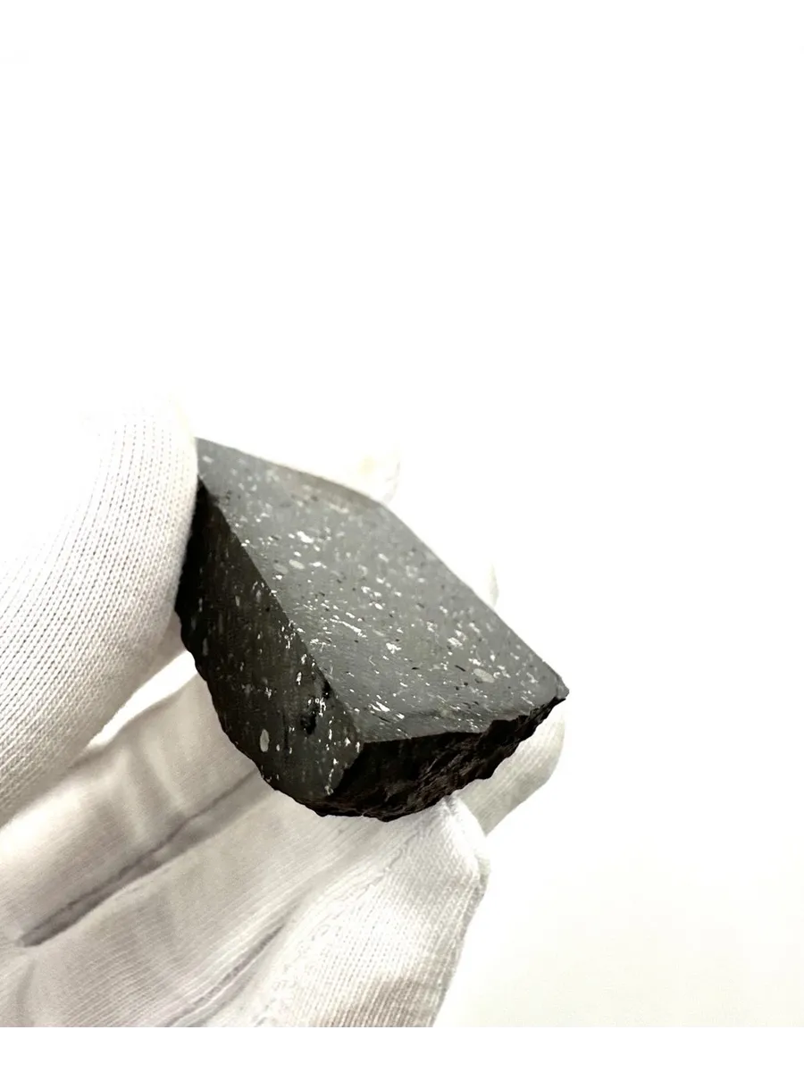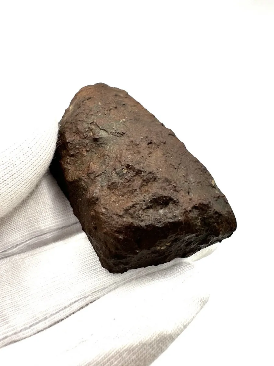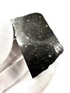 Кора плавления — аутентичная "горбушка" с характерными регмаглиптами (углублениями), образовавшимися при прохождении через земную атмосферу. Это подлинная космическая печать, удостоверяющая внеземное происхождение.
