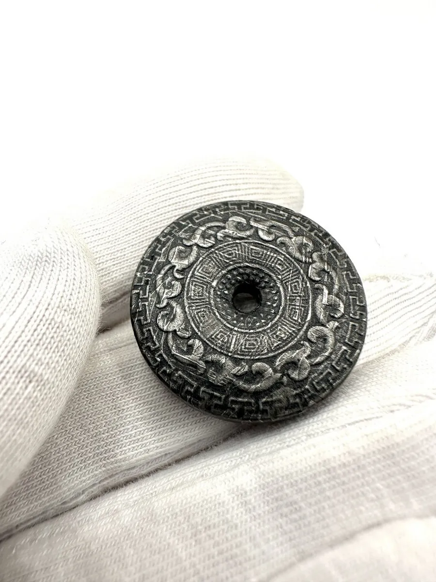 Этот Би-диск вырезан из метеорита Алетай — железного странника, упавшего в Синьцзян тысячи лет назад. Символ Неба, созданный из подлинного небесного материала.