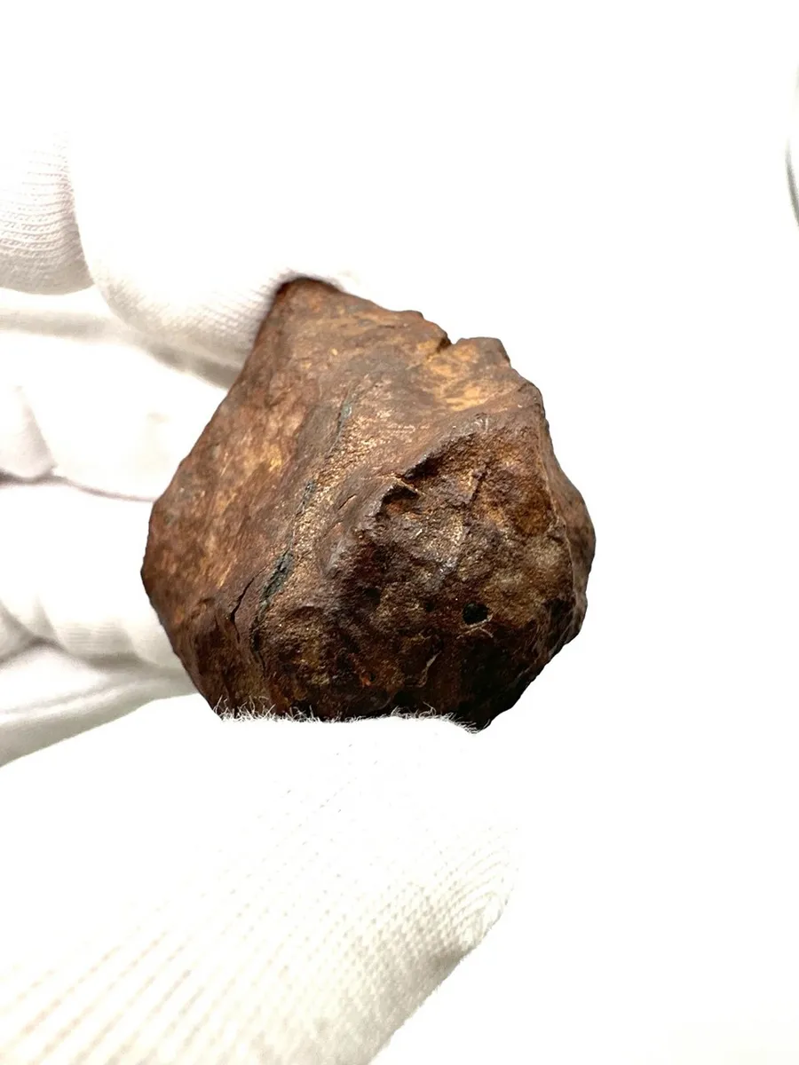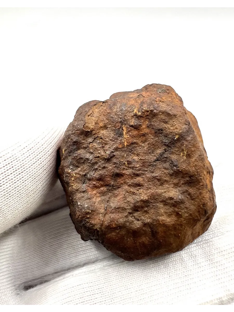 Кора плавления — аутентичная "горбушка" с характерными регмаглиптами (углублениями), образовавшимися при прохождении через земную атмосферу. Это подлинная космическая печать, удостоверяющая внеземное происхождение.