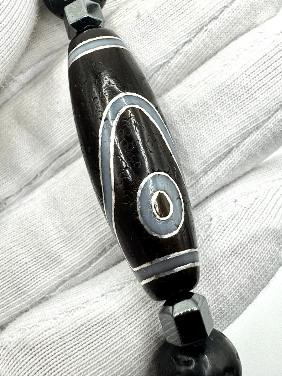 — Центральный элемент: тибетская Дзи «Небесный глаз», натуральный агат, возраст 50+ лет