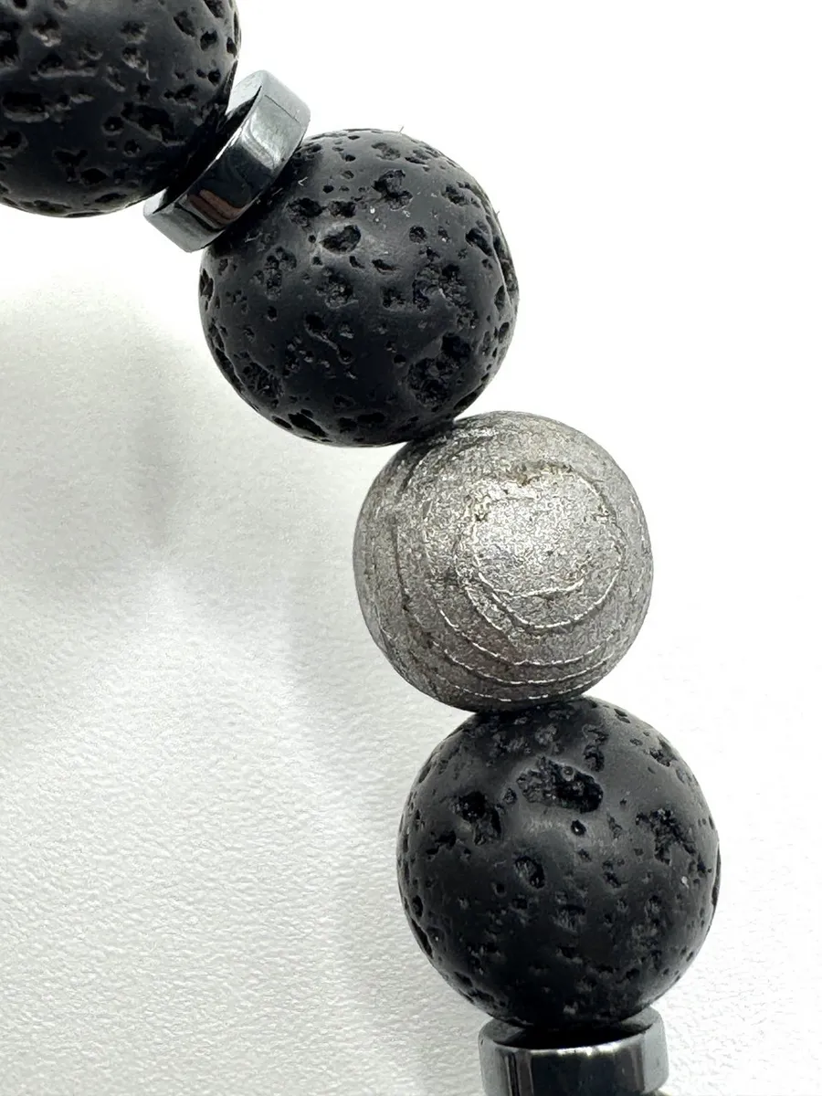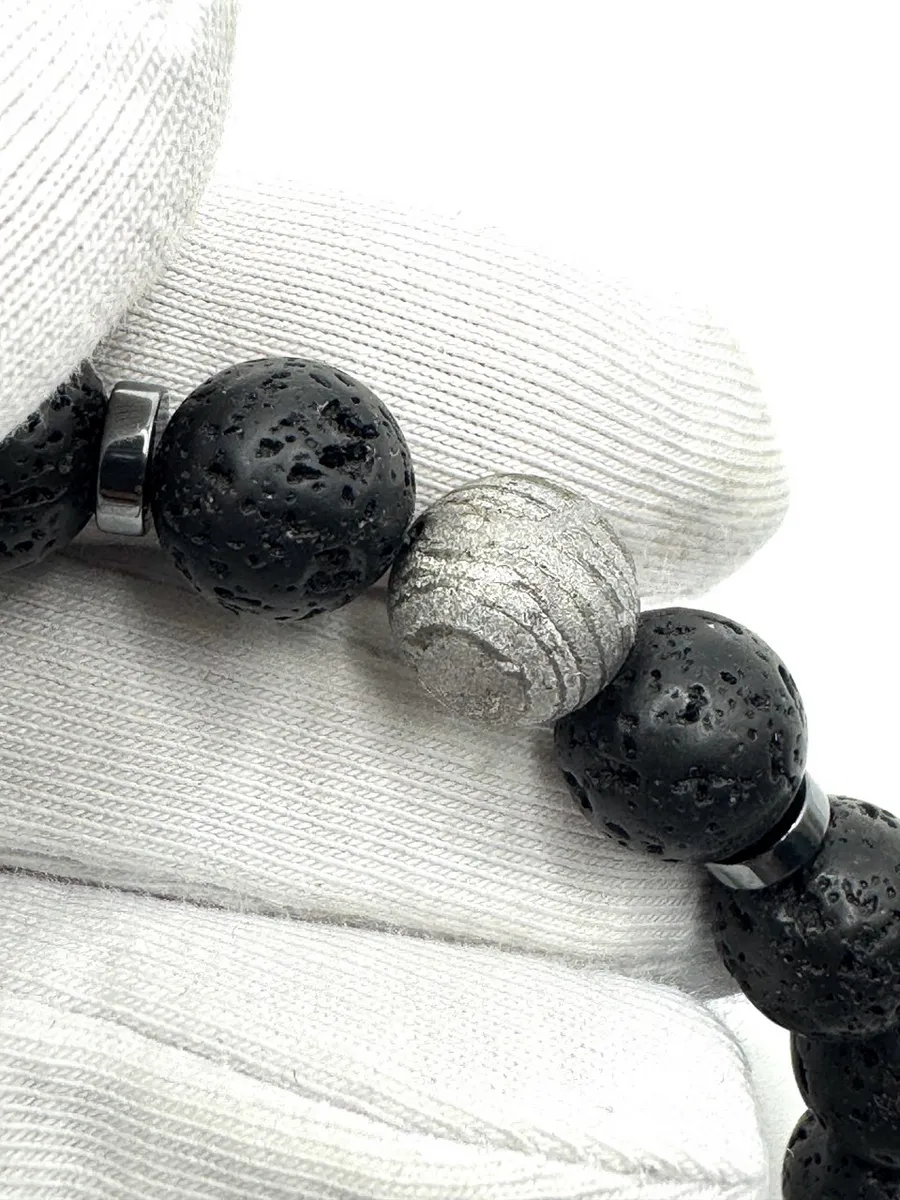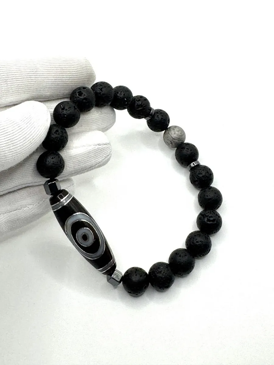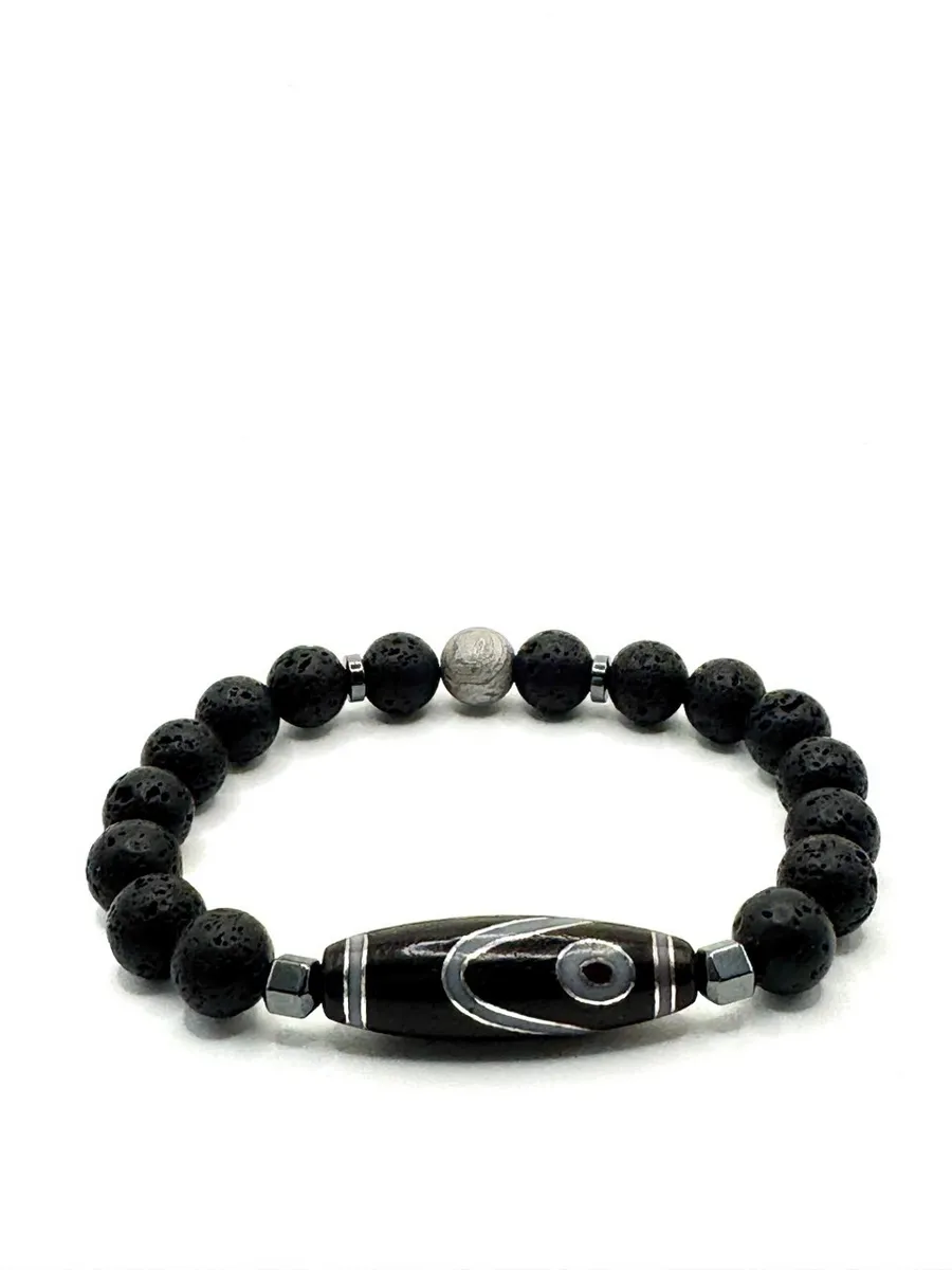 Мужской браслет силы с тибетской Дзи «Небесный глаз», метеоритом Алетай и вулканической лавой
