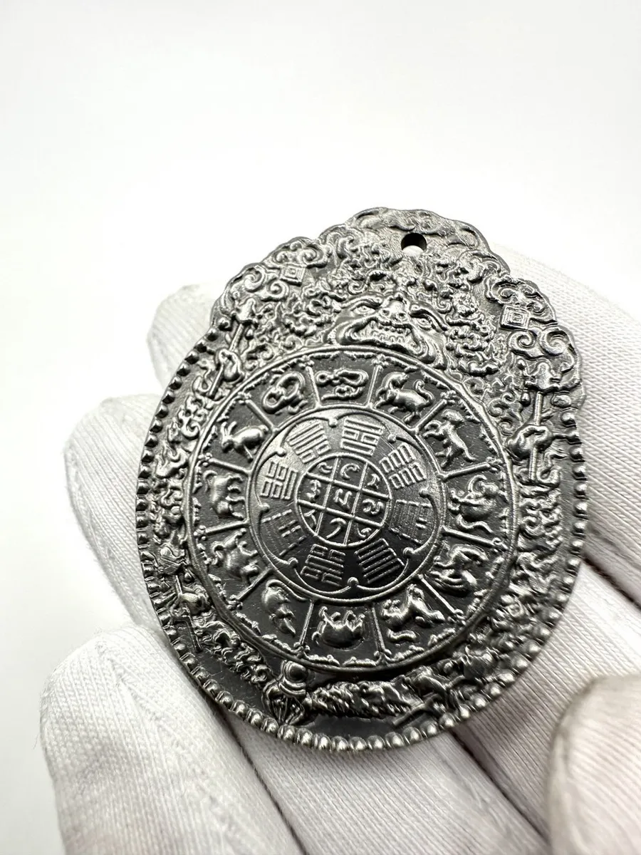 Восемь триграмм И-Цзин образуют октагон вокруг центра — это карта всех возможных состояний Вселенной, ключ к пониманию циклов перемен. Двенадцать животных по кругу — хранители времени, каждое несёт энергию своего года и часа. Даосские мастера размещали такие зеркала у входа, чтобы ни одна враждебная сущность не могла проникнуть незамеченной.