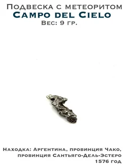 Погрузитесь в тайны космоса и древних культур с подвеской из уникального метеорита Кампо-дель-Сьело. Этот небесный посланник не просто камень – это мост между земными цивилизациями и звездными мирами.